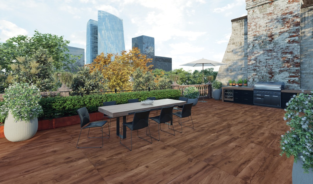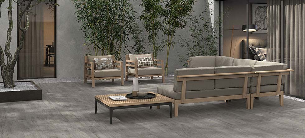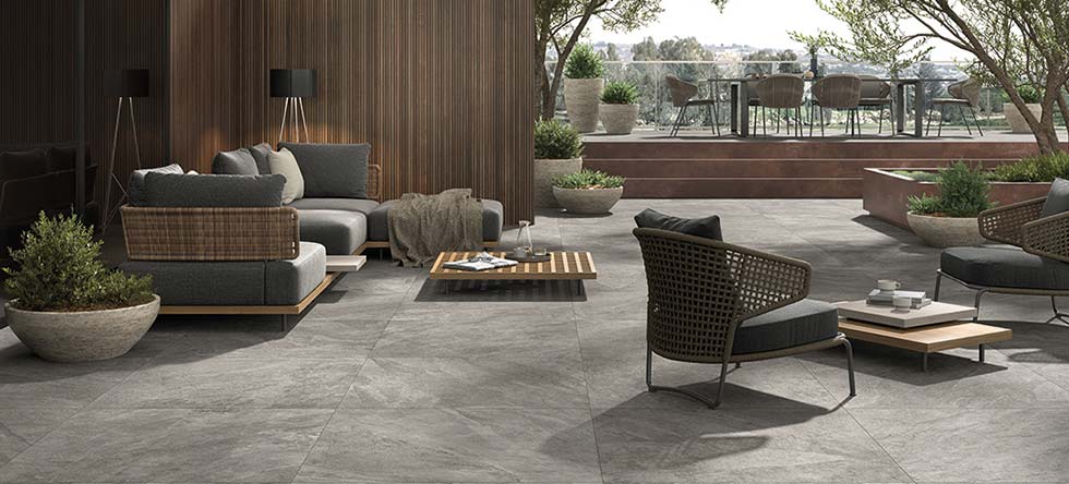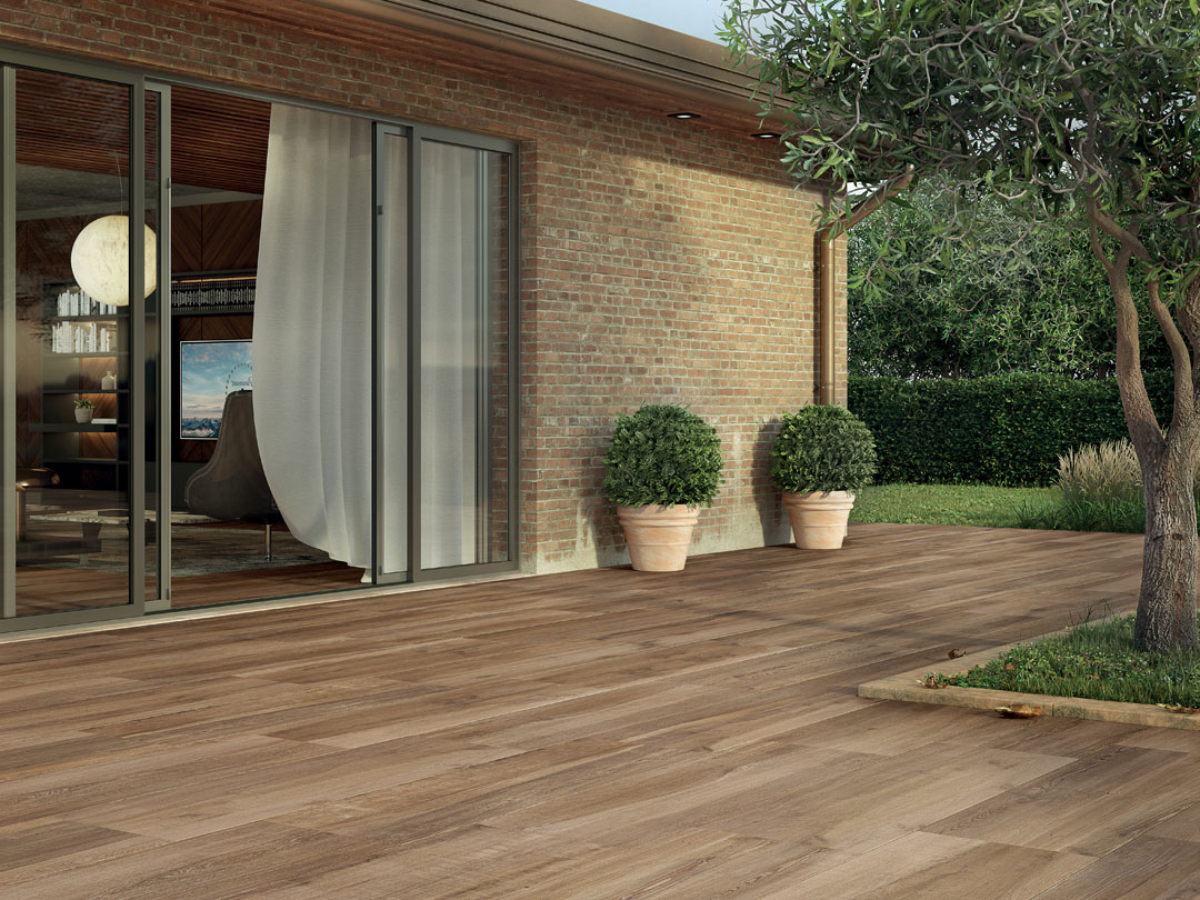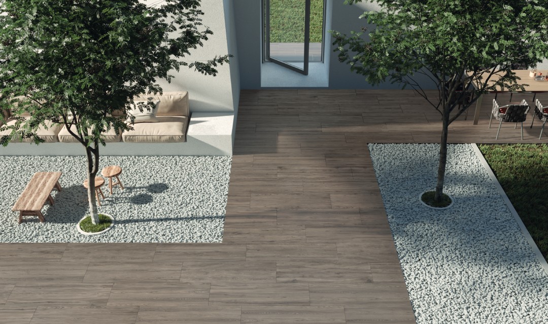 Of course. Given its technical characteristics, such as frost resistance or the ability of the colours to remain unaltered over time, our Porcelain stoneware is perfect for outdoor applications.