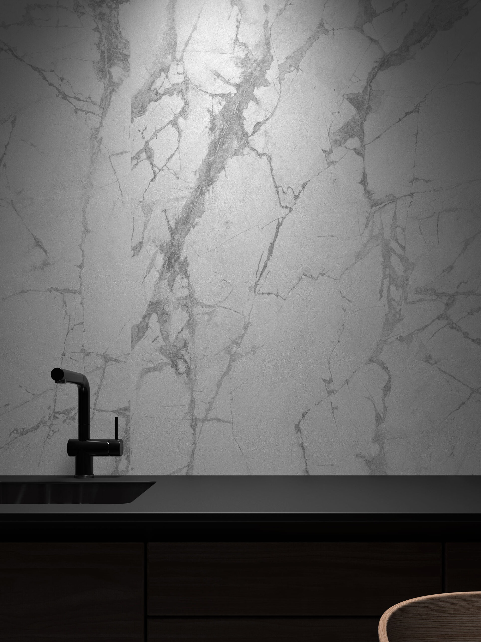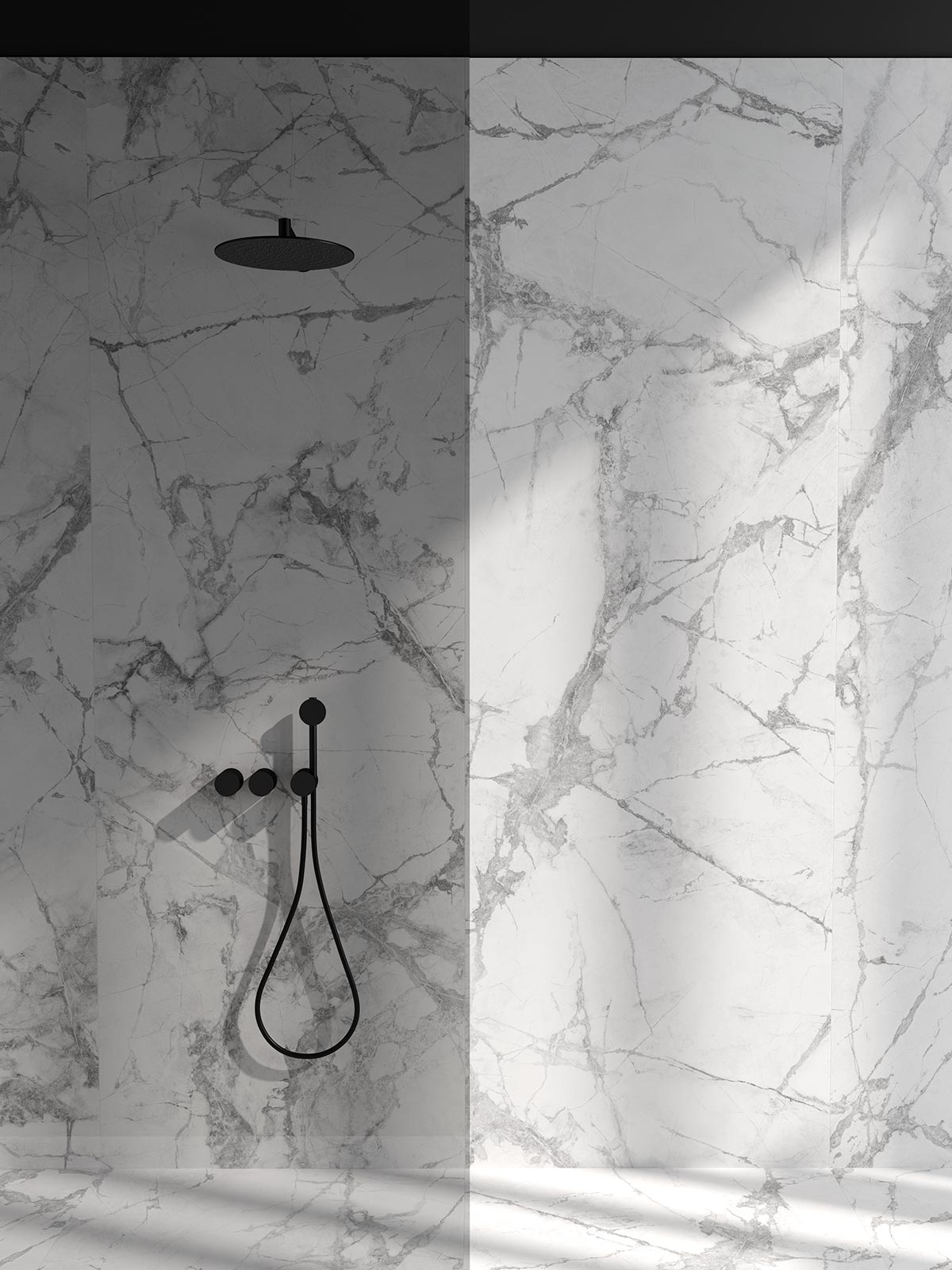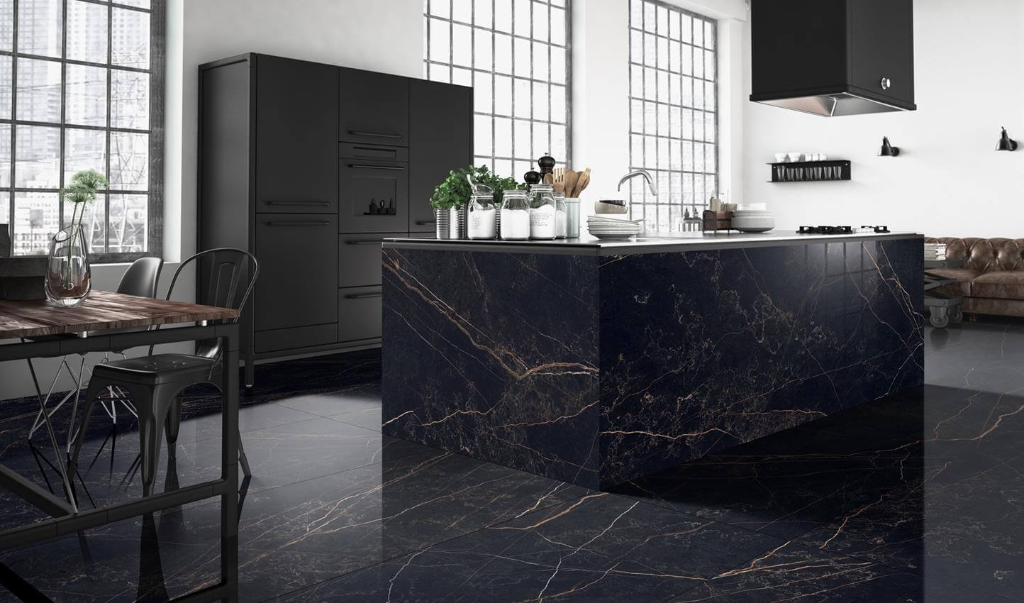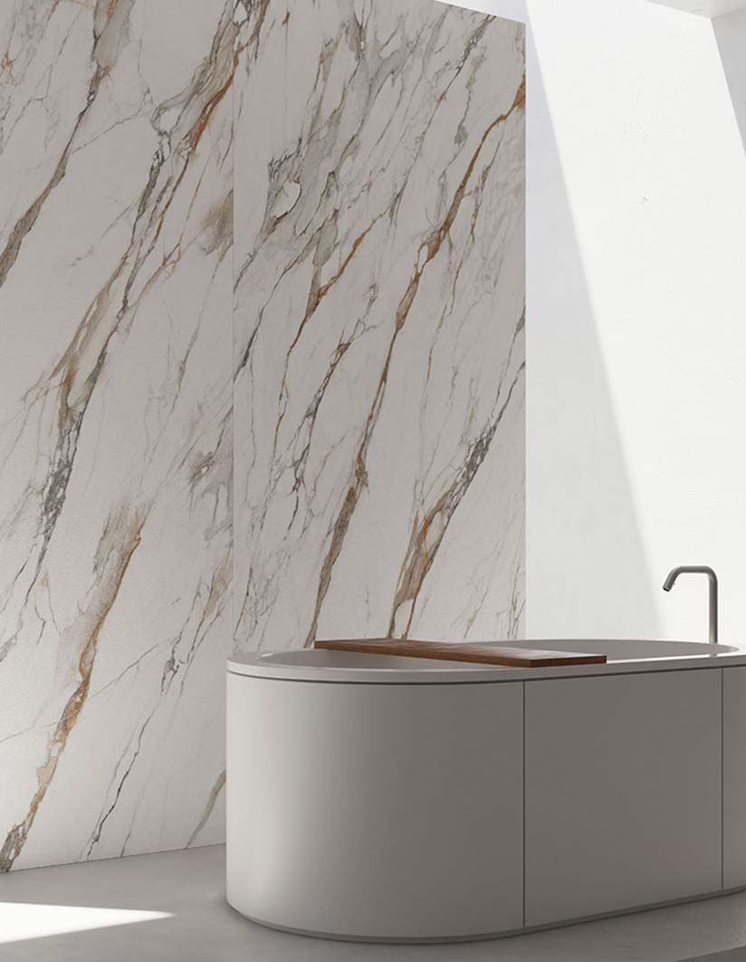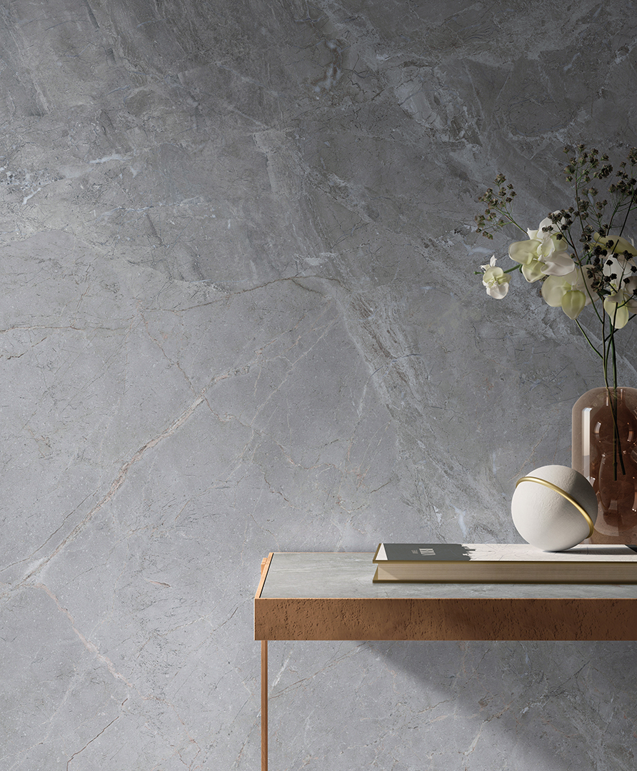 Porcelain stoneware is a compact, hard-wearing material with next to no porosity (i.e. it absorbs practically no water). The distinctive feature of Porcelain stoneware slabs is their composition, because only the purest materials – minerals, kaolin, feldspars and clay – are used to make up 99% of each individual tile, and colours of natural origin complete the attractive appearance.